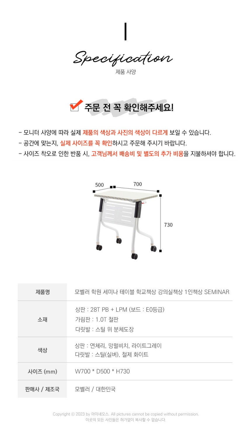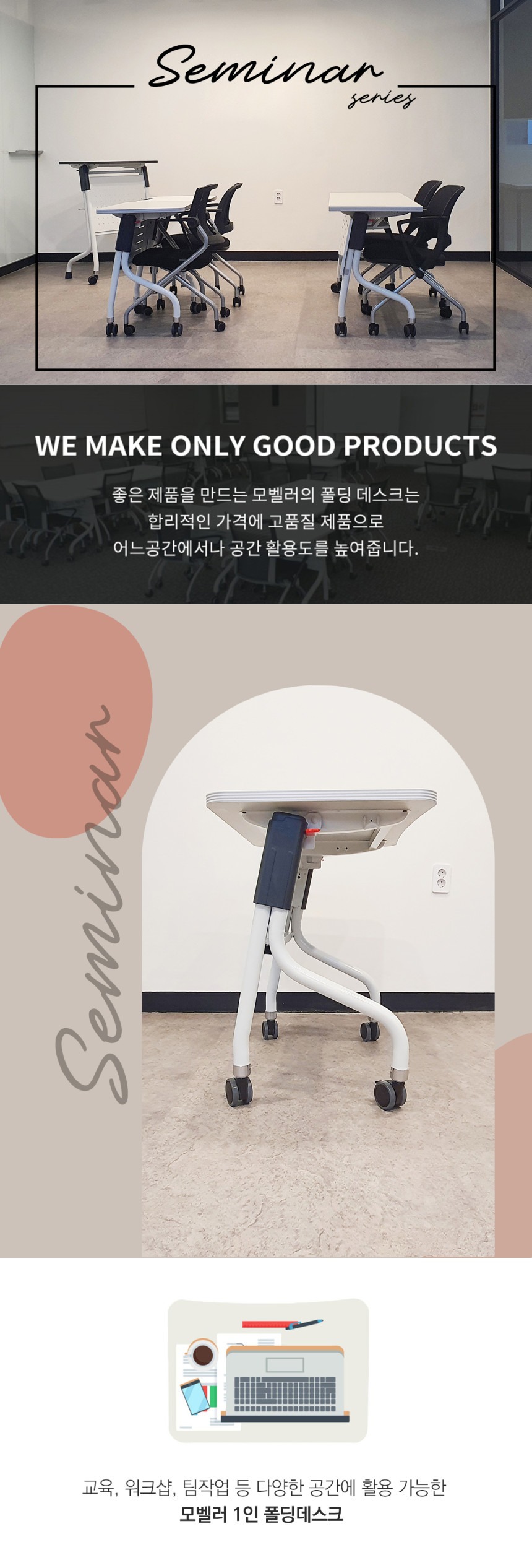 모벨러 세미나 테이블 접이식 1인 책상 이동식 학원 학교 강의실 교육 회의실 연수용 수강용