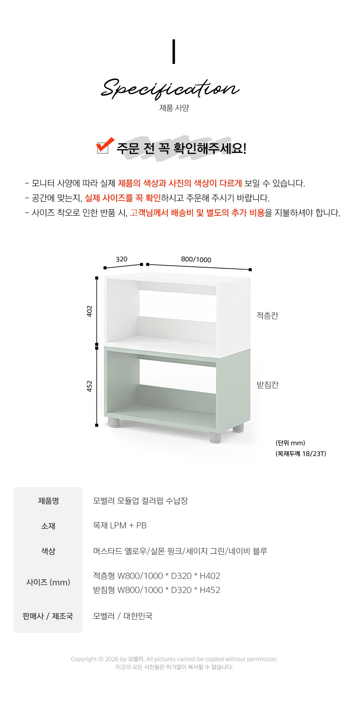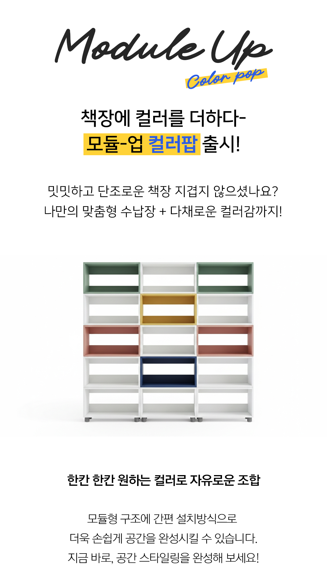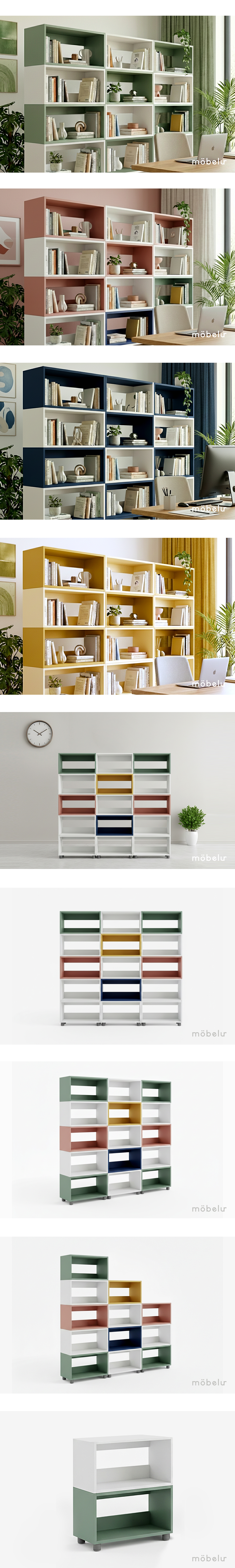 모벨러 모듈업 컬러팝 적층식 수납장 도서관 서가 책장 조합형 간편조립 1단형 적층형